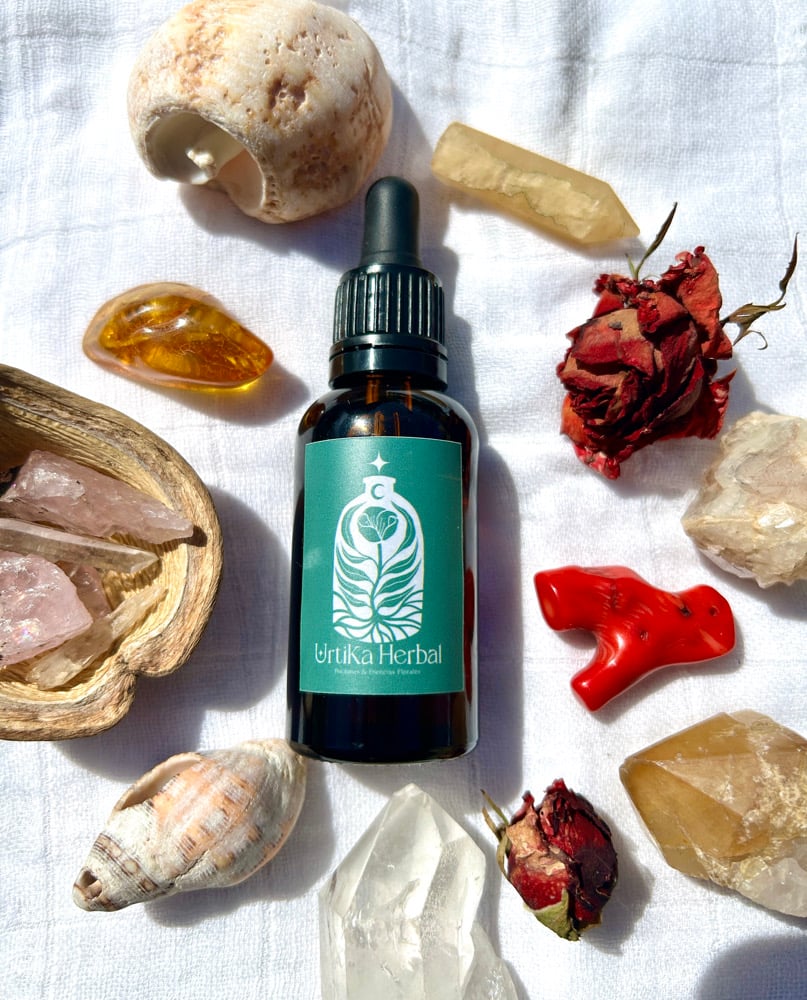 Macerado mediante técnicas alquímicas y energéticas que le otorgan una enorme eficacia, con plantas frescas cosechadas, cultivadas y procesadas con amor.